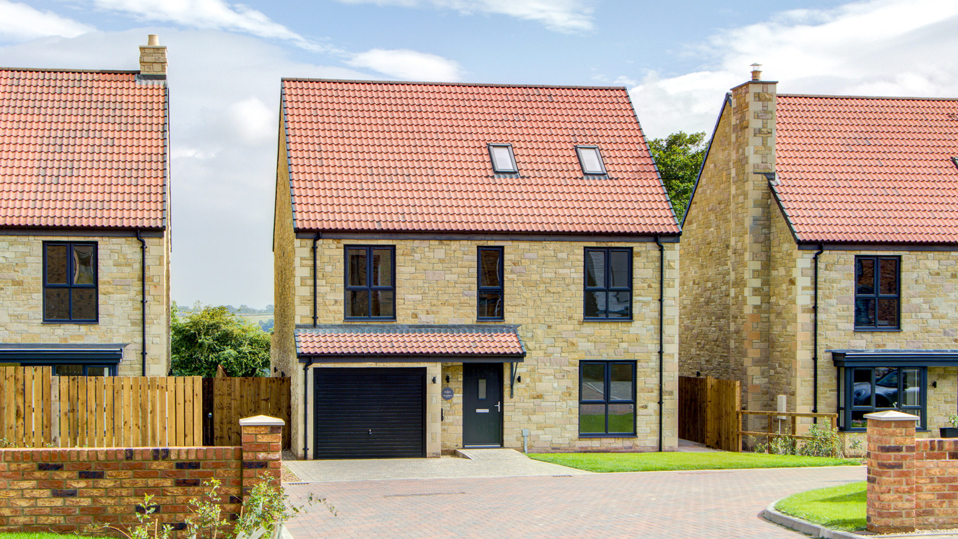 Outside: Each home benefits from a private landscaped garden with a premium paved patio and stunning countryside views. Garages include EV charging points, and the spacious driveways offer additional parking. Air source heat pumps ensure a sustainable and cost-effective living environment.