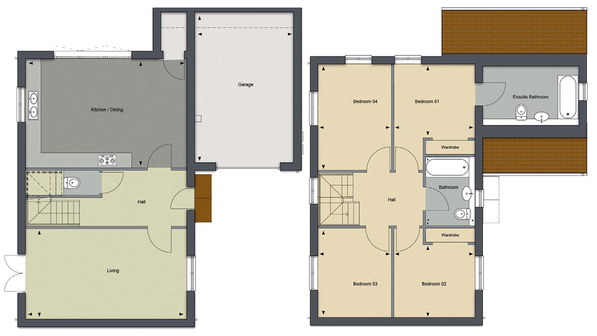 ◦ Satin-painted internal doors to the second floor